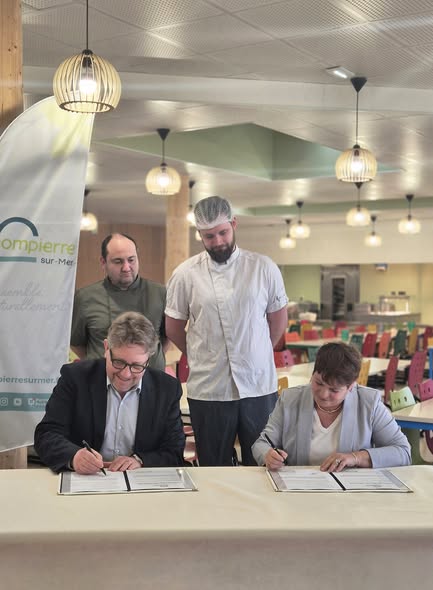 Cette signature marque le lancement concret d’une nouvelle coopération intercommunale entre Dompierre-sur-Mer et Vérines au service de la restauration scolaire.